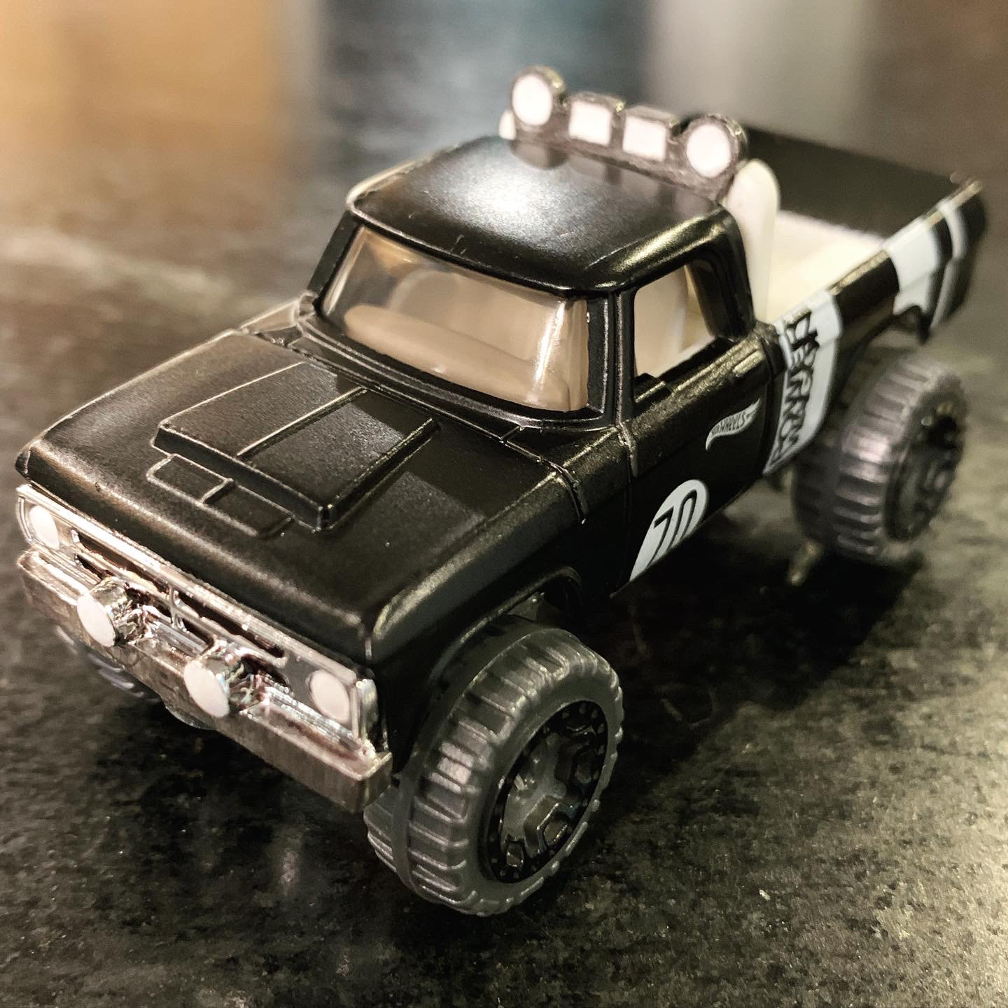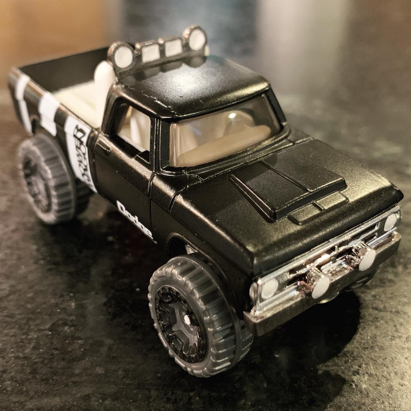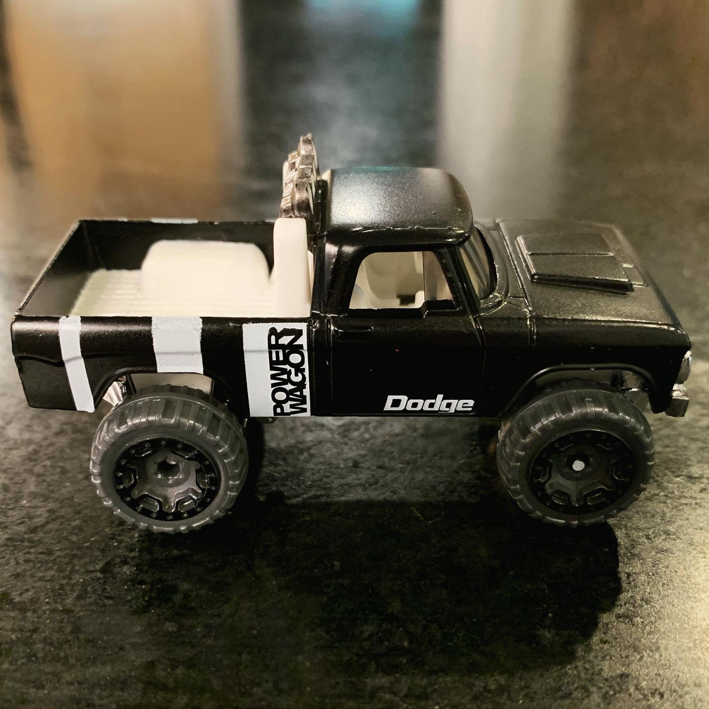 1970 Dodge Power Wagon GRFX - Hot Wheels Customization | 2022 Diecast and Plastic - 1/64 Scale Added: License Plates - Painted: Panel Lines, Head Lights, Fog Lights, Front Grill, Front Bumper, Back Bumper, Tail Lights, Light Bar, Trail Lights, Wheel Centers, Full Bed, and Some Underside Details - Collection of the Artist