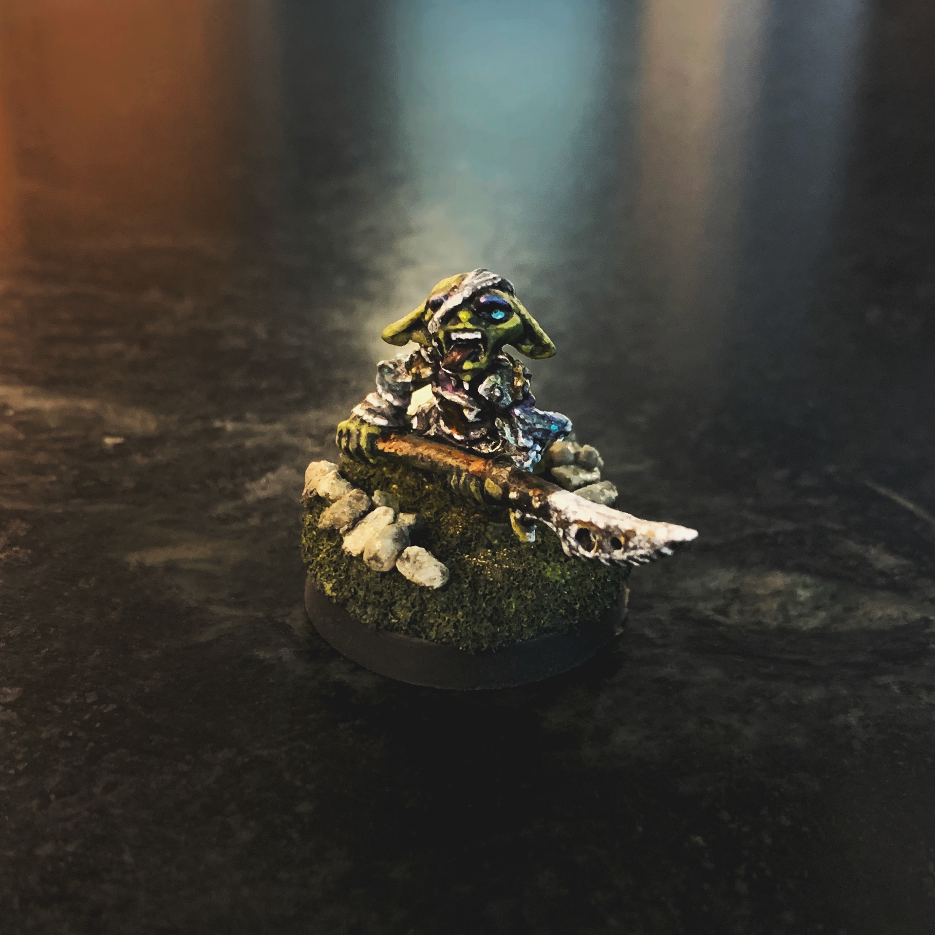 Beebop - Goblin Fighter with Bone Spear - Reaper Mini - Miniature Painting | 2022 - 2024 Acrylic on Plastic - 20mm - Collection of the Artist