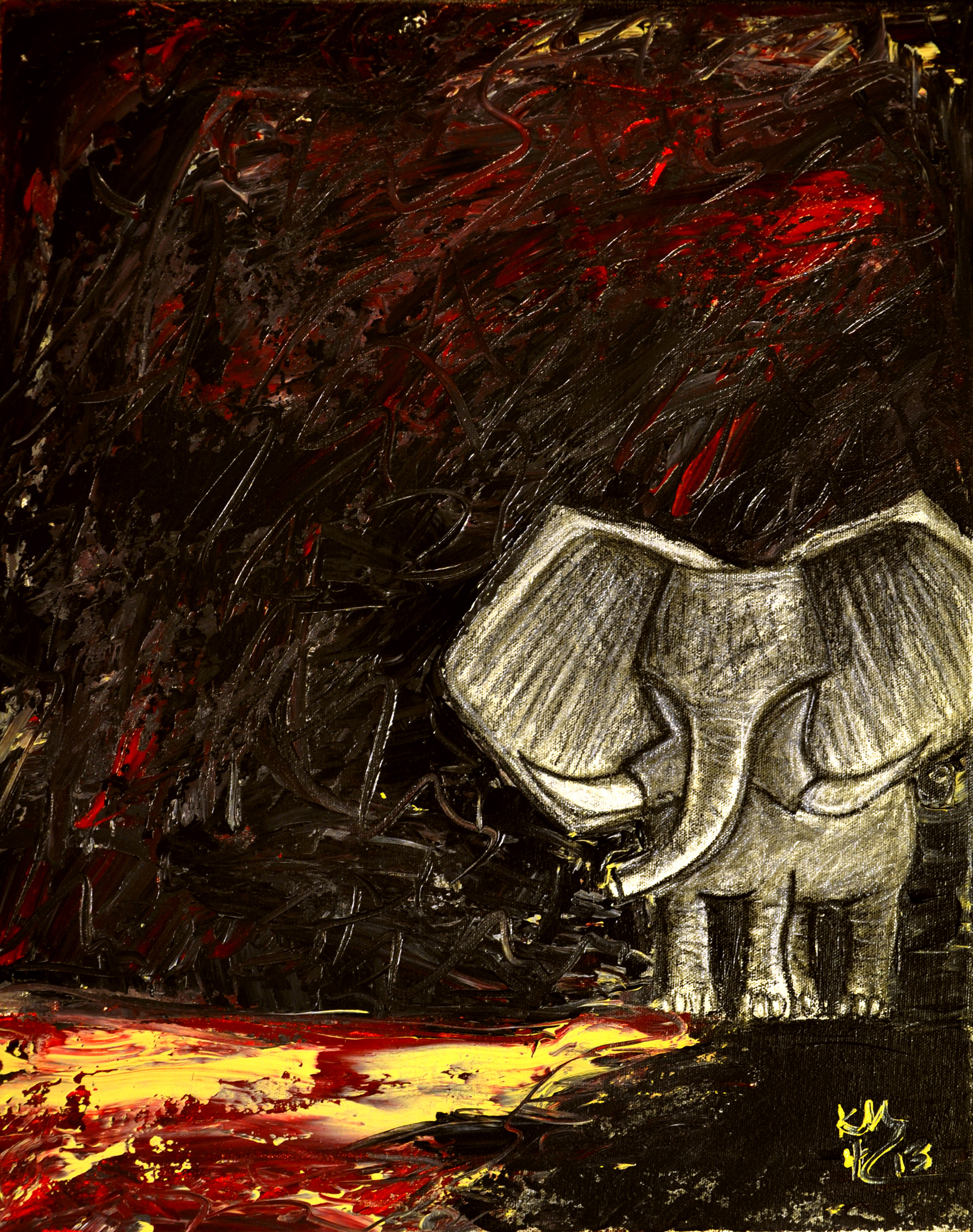 Acrylic & Charcoal on Canvas - 16" x 20" - Inspiration: Aunty Steph's Love of Elephants - CuelhoRuiz Collection