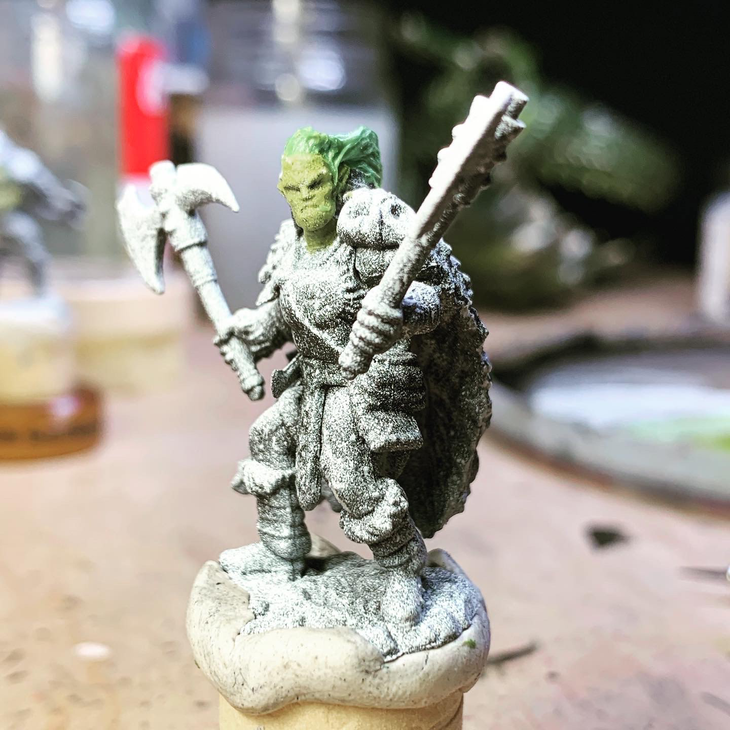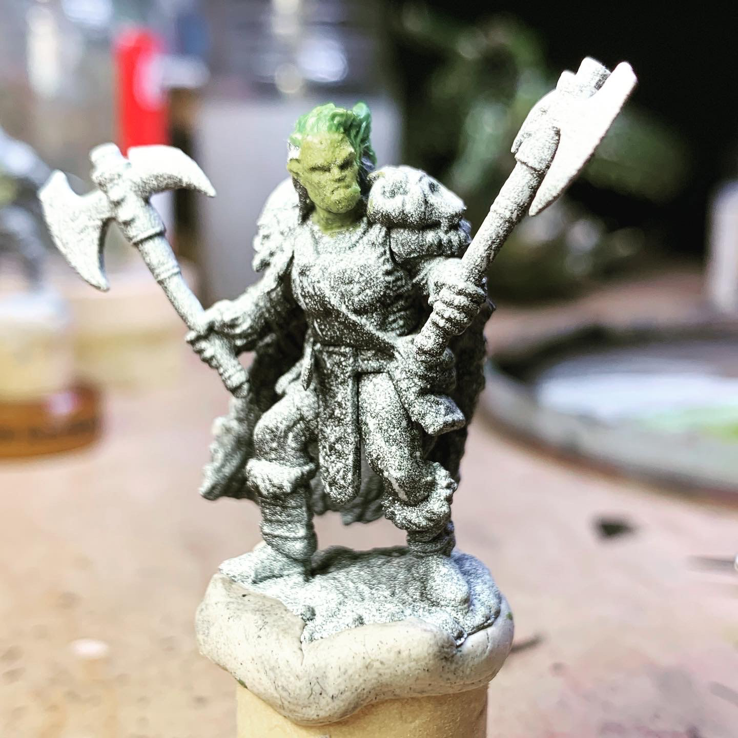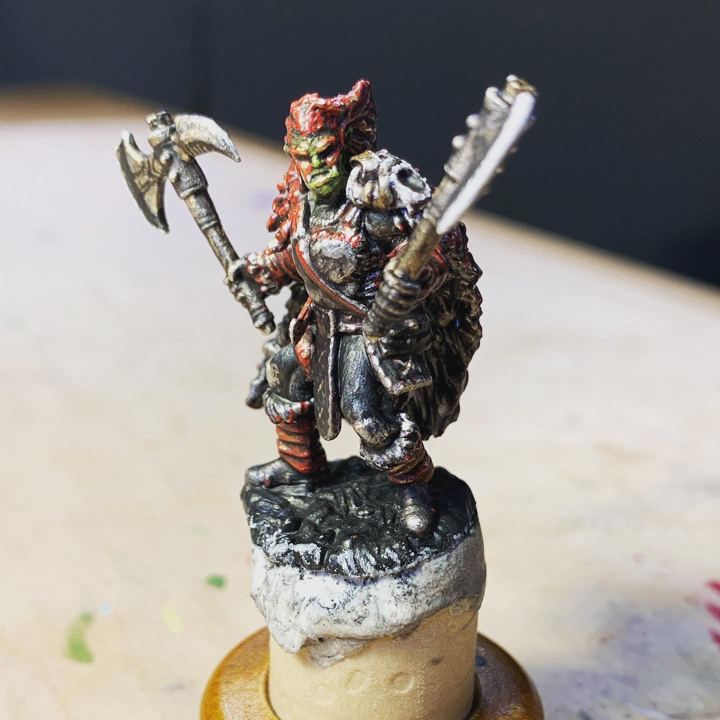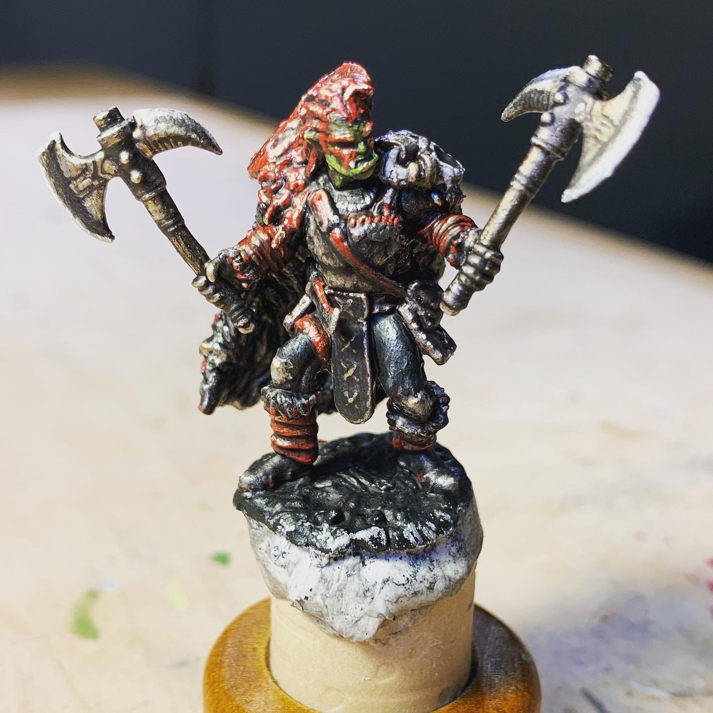 Gorkee - Ork Warrior - D&D Mini - Miniature Painting | 2022 - 2024 Acrylic on Plastic - 32mm - Collection of the Artist