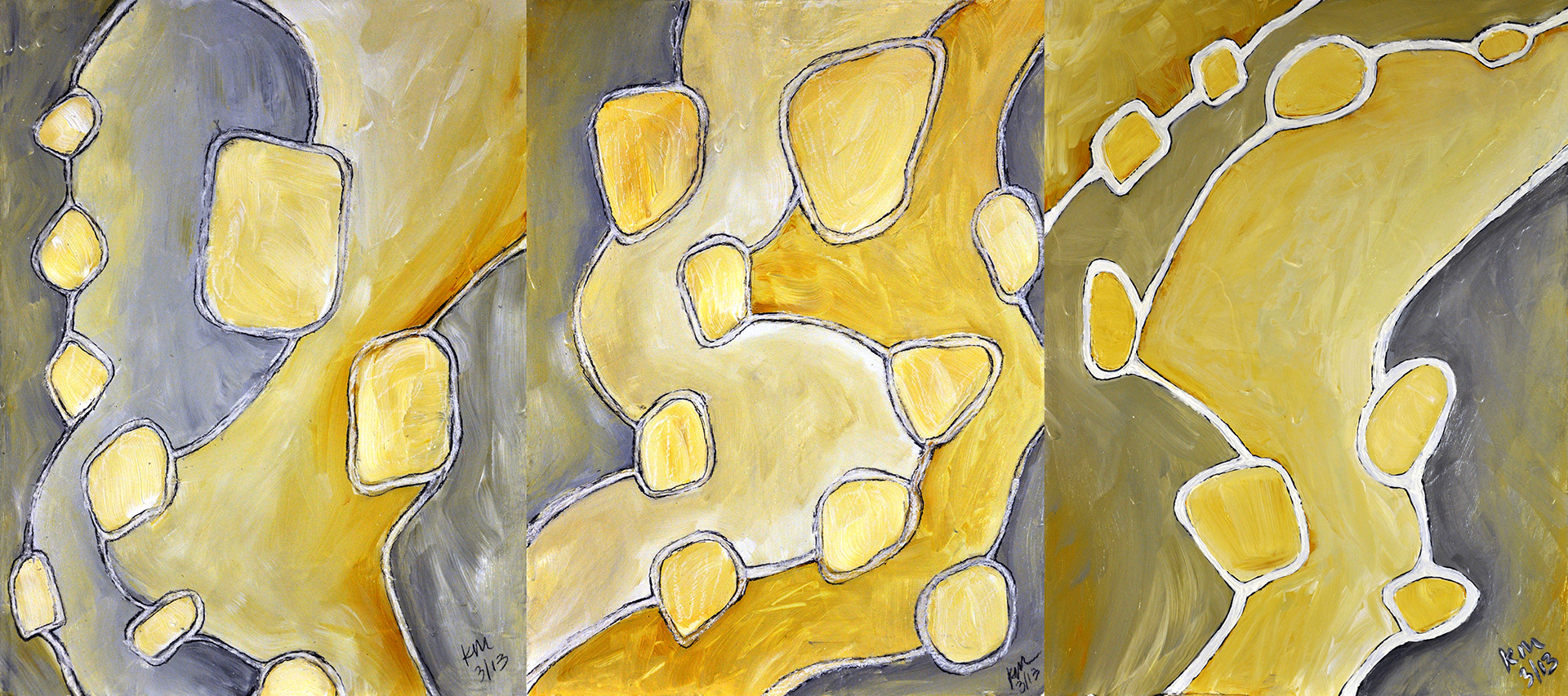 Acrylic & Charcoal on Masonite - Triptych - 11.75" x 15.75" each or 35.25" x 15.75" together - Inspiration: "Mediate" by INXS - Collection of the Artist