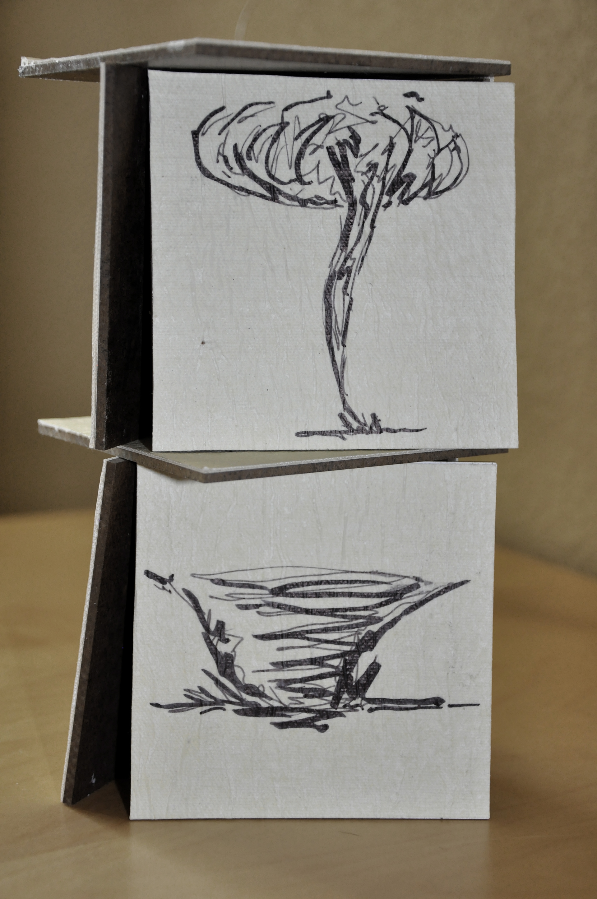 Sharpie & Mixed Media on Paper, Cardboard, & Masonite - 48" x 24" x 18" - Inspiration: LIfe in Tornado Alley - Collection of the Artist