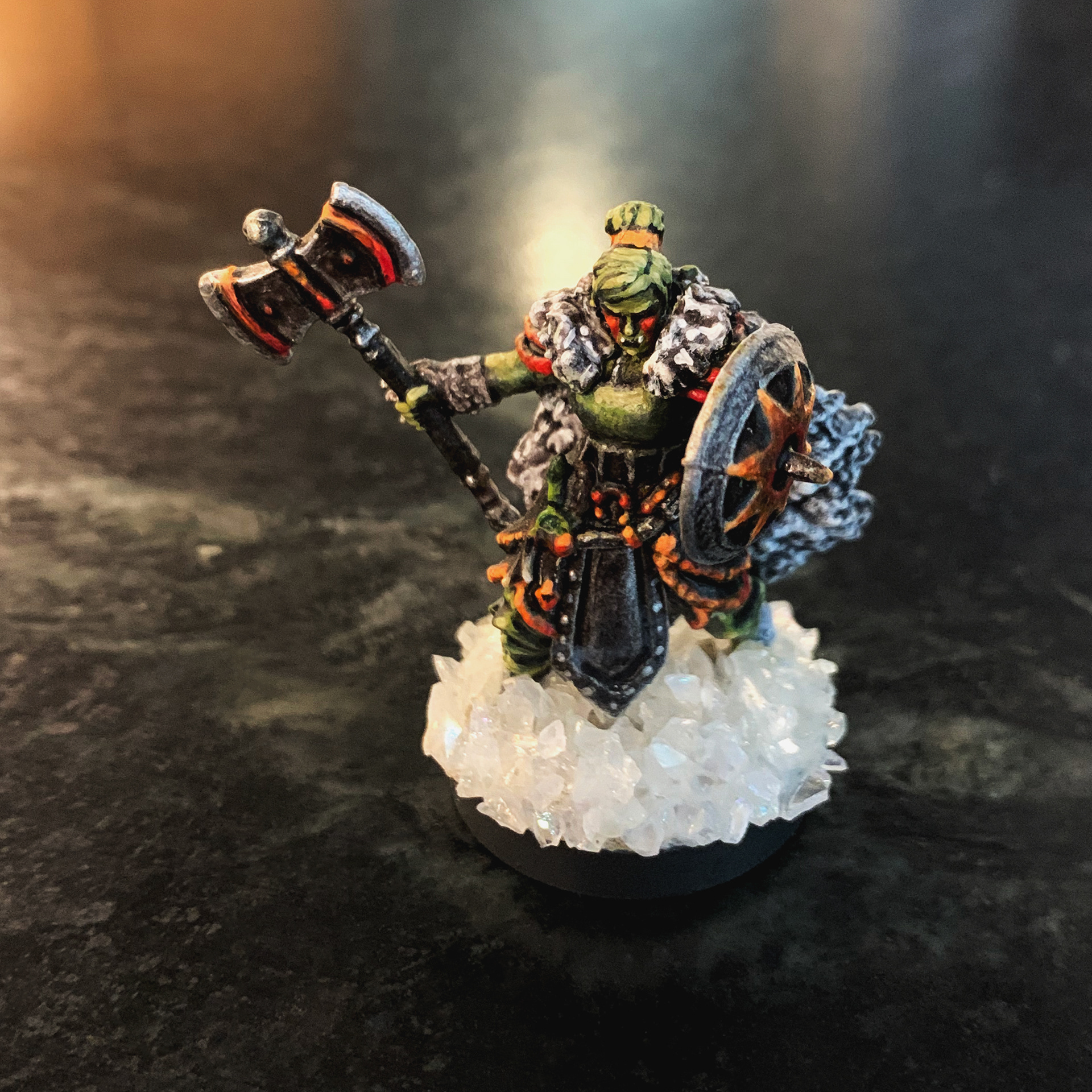Qorka - Ork Warrior - D&D Mini - Miniature Painting | 2022-2024 Acrylic on Plastic - 35mm - Collection of the Artist