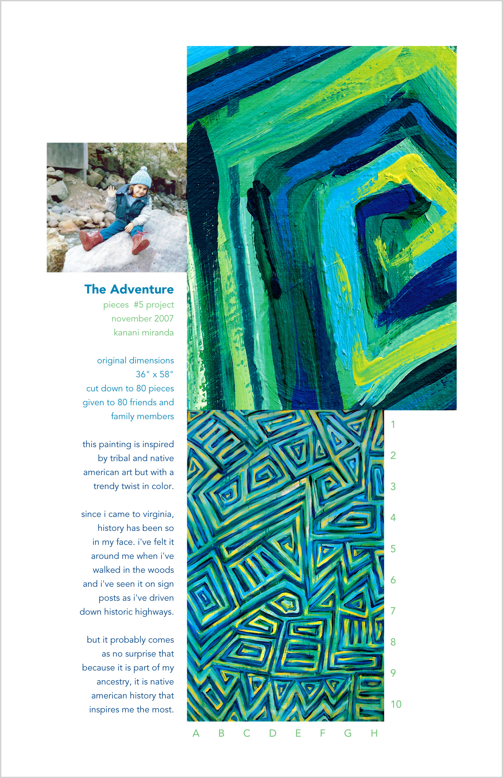 Pieces Painting #5 - Acrylic on Canvas - 36" x 58" - Inspiration: Native American Art and The History of the State of Virginia - Cut down to 80 pieces and given to 80 friends and family members all over the world